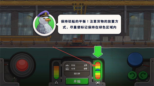 1、保持驳船平衡,注意货物放置方式,尽量使标记保持在绿色区域内。