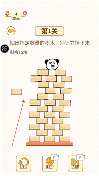 4、持续抽取积木,直到完成指定数量的抽取任务,顺利通过关卡。