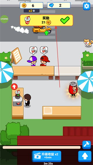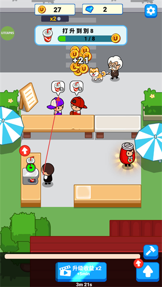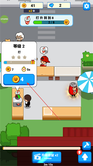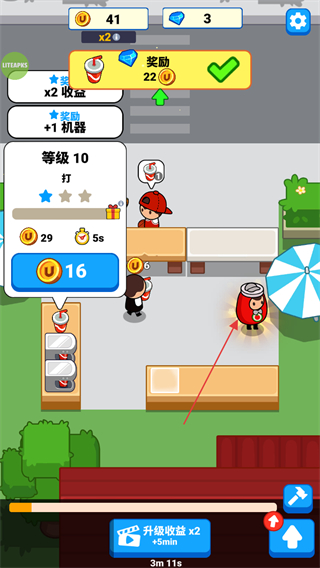 2、升级饮料制作设备,提升等级,增加金币收益。