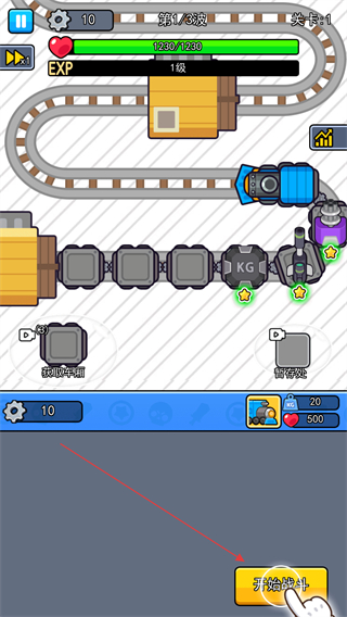 2、布置完炮台后点击开始战斗,炮台会自动攻击沿轨道进攻的哥布林,无需手动操控攻击过程。