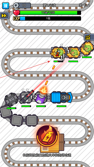 4、战斗中长按能量球图标,可触发火车冲刺,对轨道上的敌人造成大范围伤害,是应对密集敌人的关键手段。