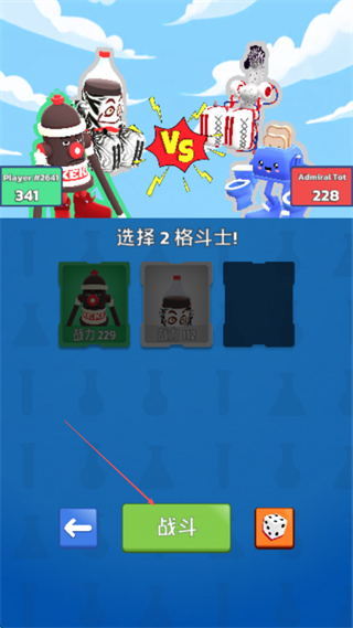 2、选择2个格斗士,点击战斗进入对战。
