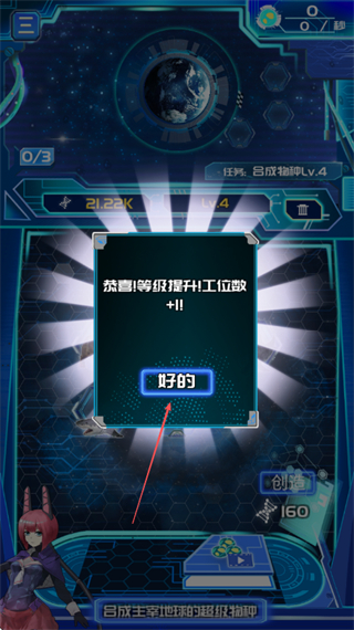 1、等级提升时,点击好的确认,获得工位位数+1的奖励。