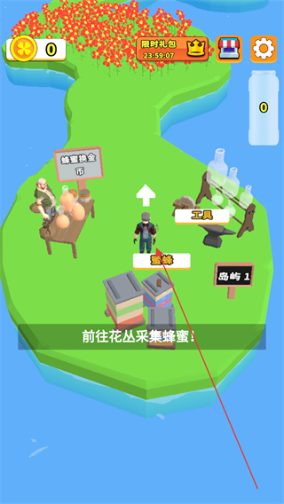 3、采集足够蜂蜜后,返回蜂箱处,将蜂蜜兑换成金币,积累财富。