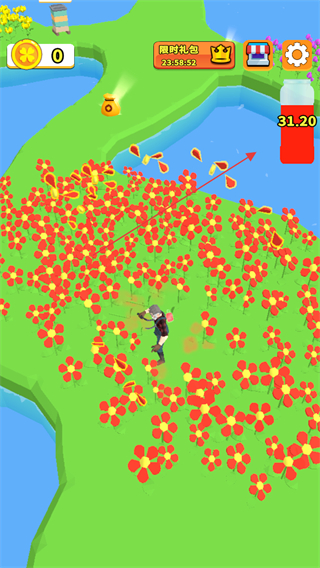 2、在花丛中持续采集,使蜂蜜瓶容量增加,获取更多蜂蜜。