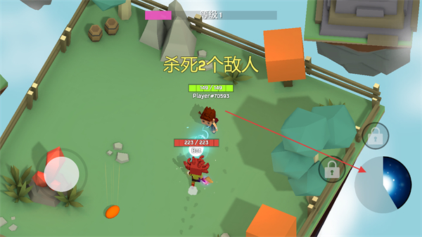 1、操控左侧移动摇杆控制角色移动,靠近红色敌人,发动攻击,目标是杀死指定数量的敌人。