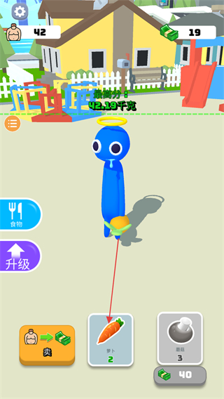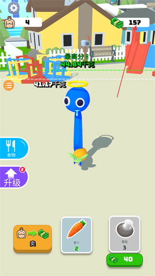 1、点击胡萝卜图标,让角色进食胡萝卜增重,提升体重数值。