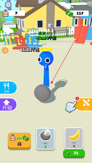 4、点击升级按钮,提升角色进食和增重能力,或点击战斗按钮,参与体重比拼。