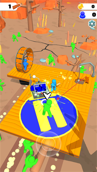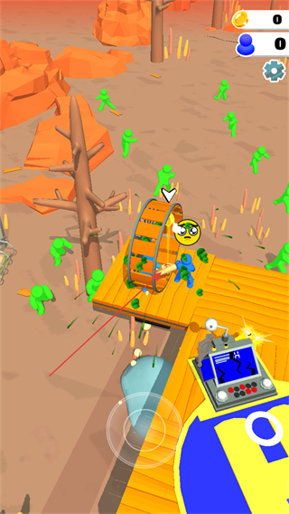 3、操控蓝色小人操作控制台,启动木筏上的设备,抵御丧尸并升级设施。