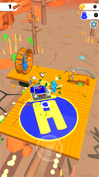 2、让蓝色小人进入转轮装置,使其转动产生动力,推动木筏发展。