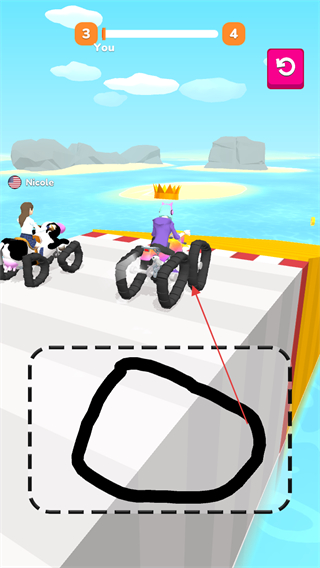 1、绘制图形生成载具,驾驶其在赛道行驶,超越对手Nicolo,争夺领先位置。