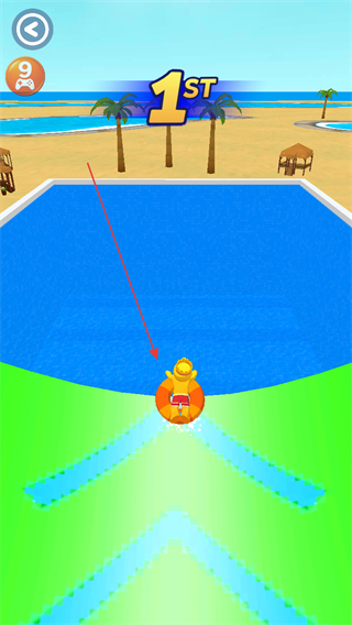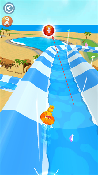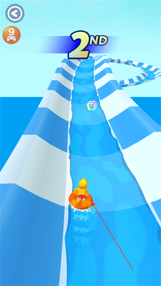 1、操控角色在水上滑梯赛道滑行,通过调整方向超越其他选手,提升排名。