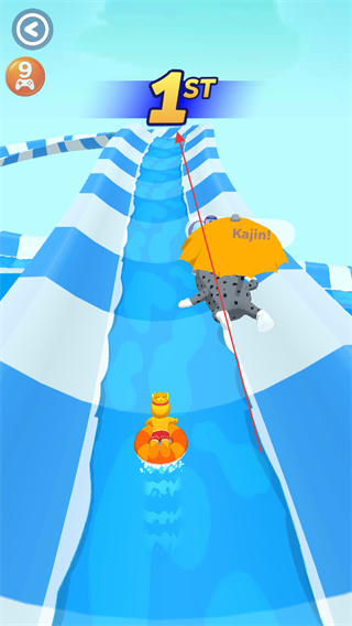 1、操控角色在水上滑梯赛道上滑行,与其他选手竞争排名如从16TH提升到6TH、1ST。