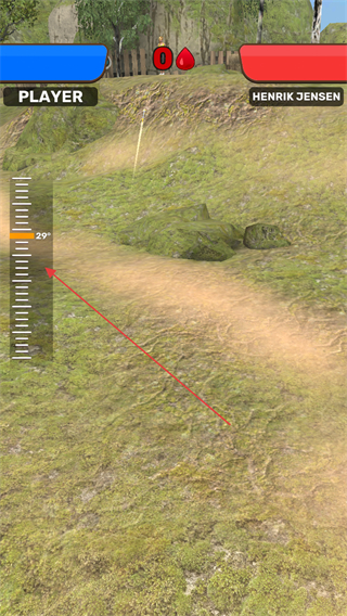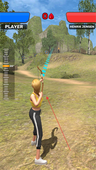 1、操控角色拉开弓箭,调整左侧角度刻度,瞄准敌方目标。