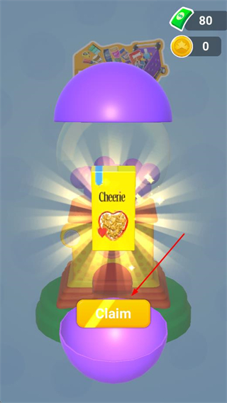 4、扭蛋机获得物品后,点击Claim按钮领取物品,将物品整理摆放到冰箱中,完成冰箱的填充与陈列。