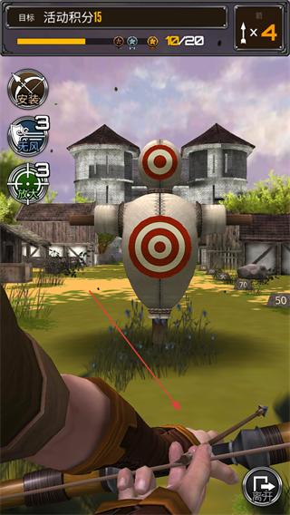 2、利用游戏中的技能如无风,爆发,提升射箭精度和得分。
