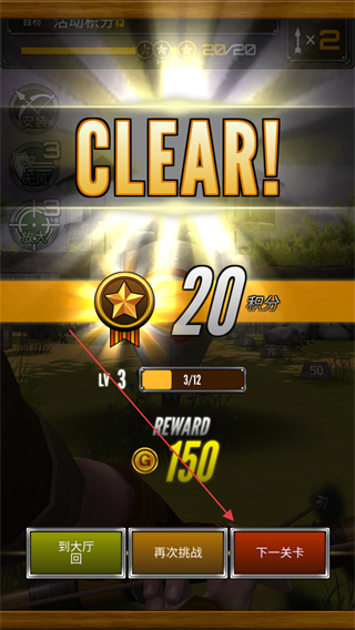 4、通关后,可选择下一下关卡继续挑战,获取更多积分和金币奖励。