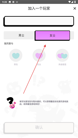 2、在加入一个玩家界面,选择性别如女士,填写信息后加入玩家列表。