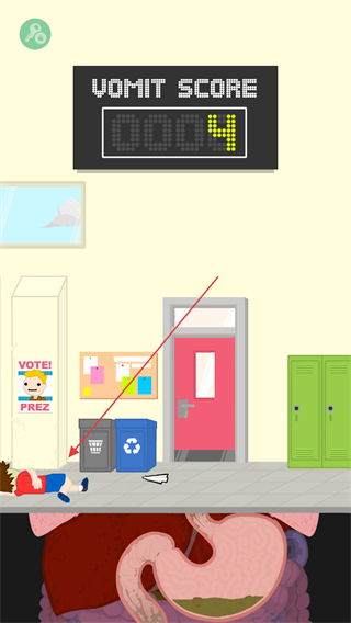 3、注意下方胃部状态,保持呕吐物生成,持续获取分数。