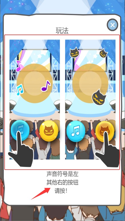 1、创新双键节奏玩法,采用声音符号触发左键与其他符号触发右键的简易操作逻辑,通过精准判定积累游戏货币奖励。