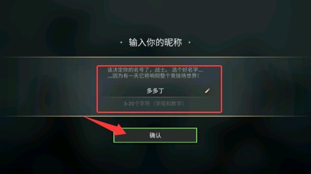 2、在命名框内输入喜欢的游戏昵称,确认后该名称将作为你在游戏中的唯一身份标识。