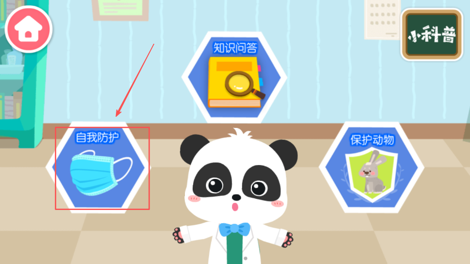 1、首先需要打开游戏进入主界面选择适合的学习模块开始体验,跟随动画角色认识病毒传播途径和危害性以及预防的重要性。