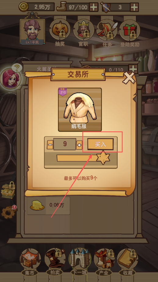 2、在交易所界面中输入计划购买的商品数量,确认价格无误后点击买入按钮完成交易,这个过程需要谨慎考虑资金分配和风险控制。