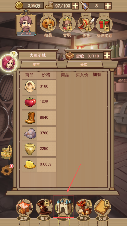 3、成功购入商品后需要携带货物前往新的城市探索市场行情,在不同地区间进行商品流转,利用地域差价获取商业利润。