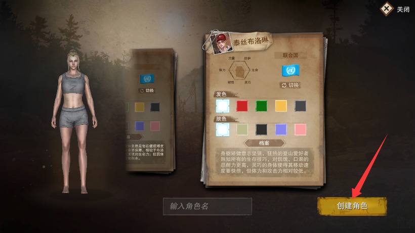 1、进入游戏后首先设定角色发色与肤色特征,输入专属名称完成角色创建流程。
