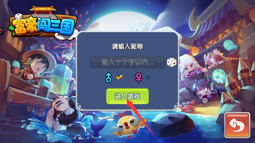 1、启动游戏后点击进入游戏按钮,即可开启这款融合三国与大富翁元素的趣味挑战。