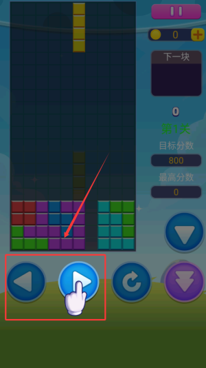 1、玩家通过旋转与移动不同形状的方块,使其在底部堆叠区域完成拼接。当任意一行被完全填满时,该行会自动消除并为玩家累计分数。