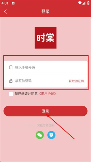 3、在登录页面输入手机号码、填写验证码,勾选用户协议后点击登录,完成登录操作。