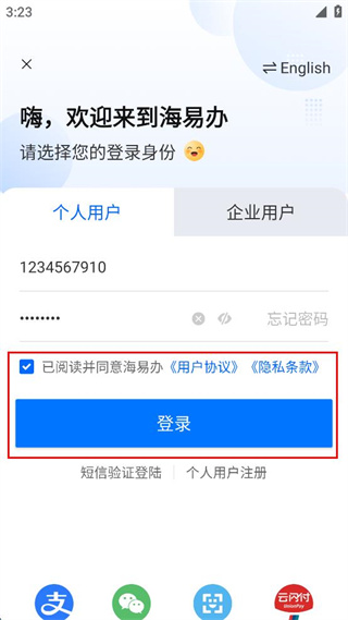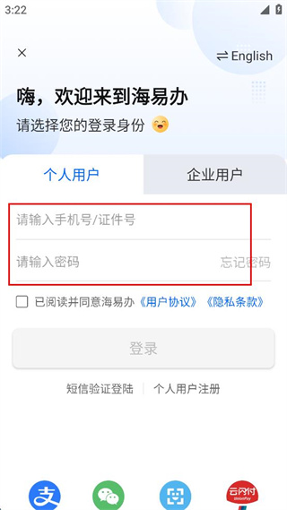 3、输入手机号/证件号和密码,确认输入的账号密码无误。