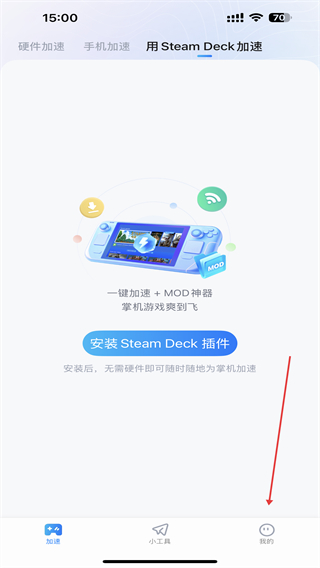 1、打开奇游联机宝app,点击底部导航栏中的我的选项。