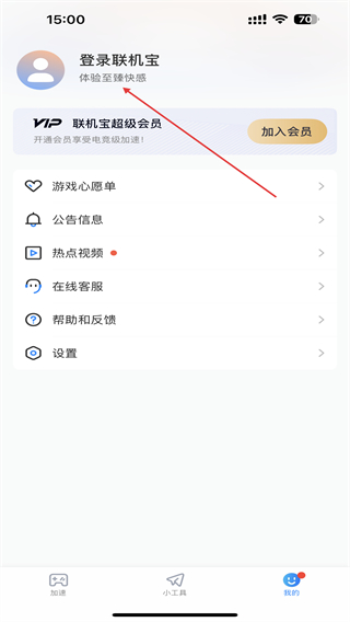 2、进入我的页面内,点击上方登录联机宝的按钮。