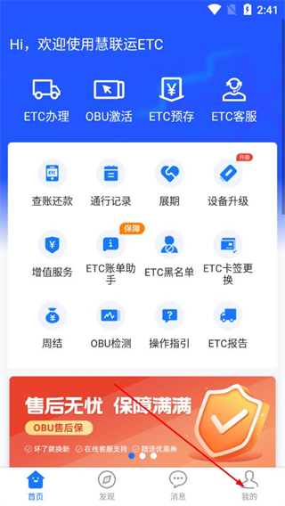 1、打开慧联运APP,点击底部我的选项。