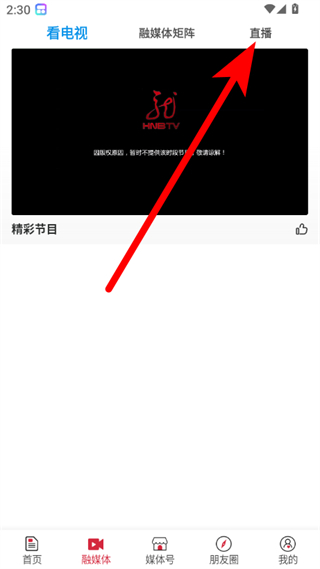 1、在APP首页,点击底部融媒体选项,进入融媒体界面。