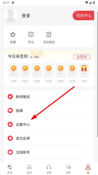 1、在云上竹山app首页,点击右下角我,进入个人页面。