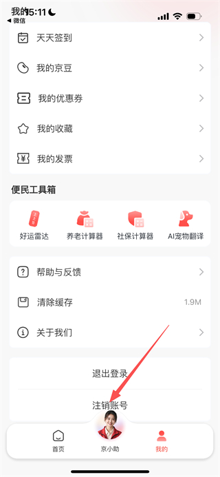 2、在个人页面,点击注销账号选项,进入注销确认页面。