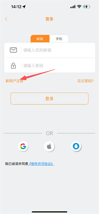 3、在登录页面,点击新用户注册,进入新用户注册页面。