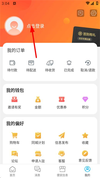 2、在个人页面,点击点击登录区域,进入登录页面。