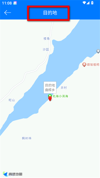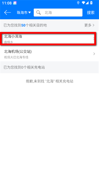 3、在搜索结果中,选择具体的目的地如北海小洱海,进入目的地地图页面。