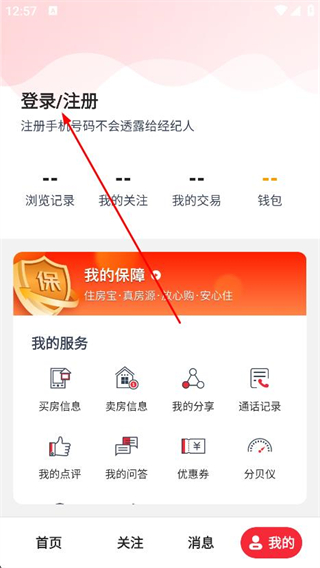 1、打开住房宝APP,点击底部导航栏最右侧的我的选项。