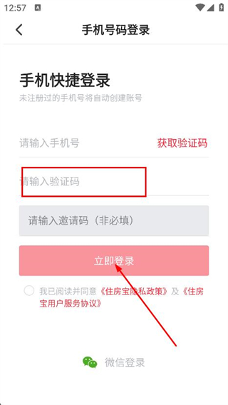 4、输入收到的验证码,点击立即登录即可完成注册操作。