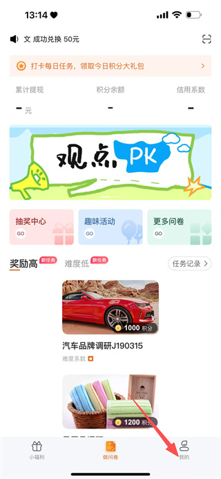1、问卷赚分兑换