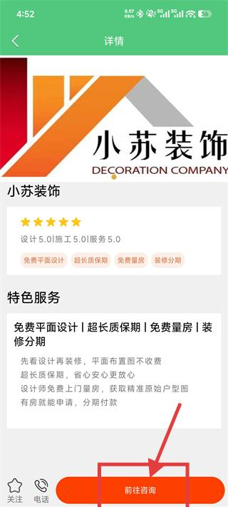 3、在公司详情页,点击前往咨询按钮,进入发布设计师需求页面。