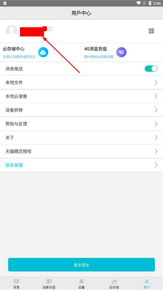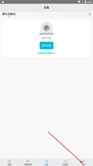 1、在设备页面,点击底部用户,进入用户中心页面。