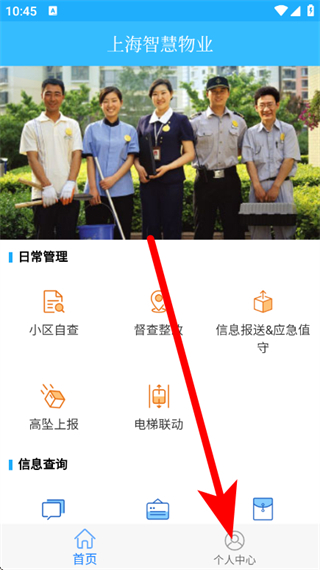 1、打开上海智慧物业,在首页点击底部个人中心。