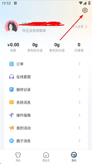 2、在个人页面点击右上角设置图标,进入设置页面。