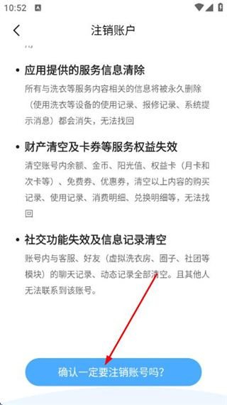 4、在注销账户页面点击确认注销账号,完成账号注销操作。